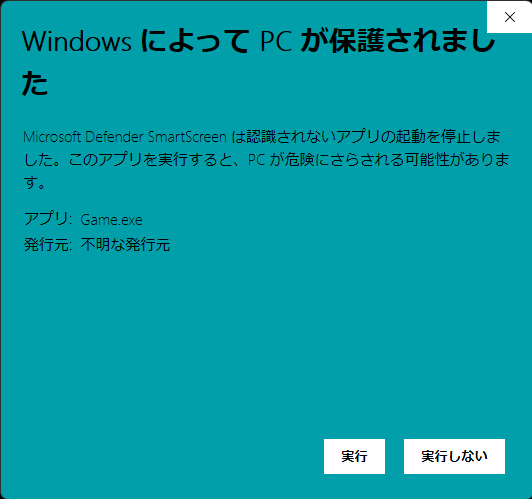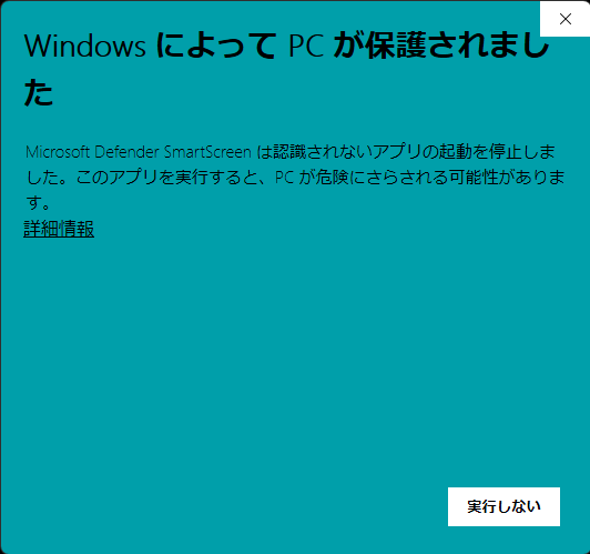 上記のエラーメッセージが表示された場合は、[詳細情報]→[実行]をクリックしてください。