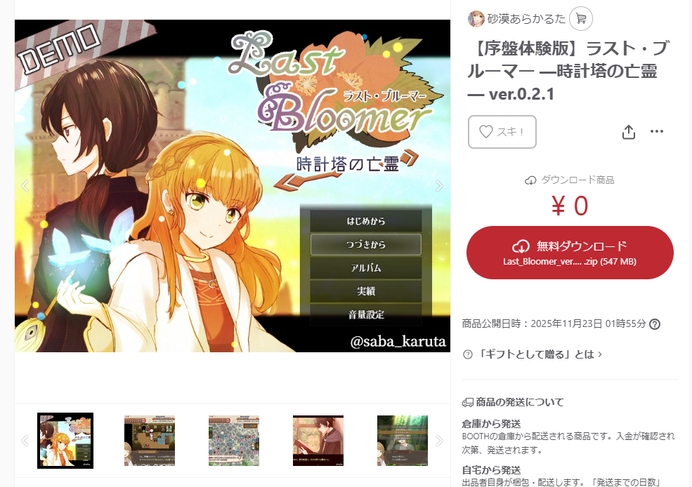 『ラスト・ブルーマー ―時計塔の亡霊―』序盤体験版ver.0.2.1、配信開始しました!